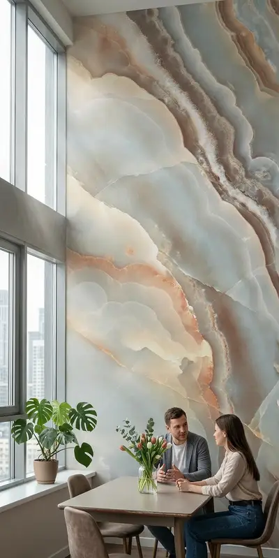 Гибкий мрамор «Персидский Оникс» из серии «ВИП» от ПК Гибкий камень – роскошь и инновации для вашего интерьера.