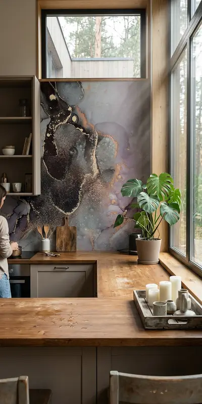 Каменные обои для фартука кухни